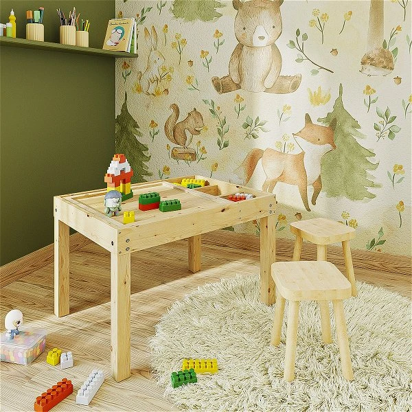 Der Lars Bau und Spieltisch hilft nicht nur Ordnung im Kinderzimmer zu halten, er bietet Ihren Kindern auch einen idealen Platz um mit den beliebten bunten Spielsteinen tolle Konstruktionen zu bauen. Unter der verschiebbaren Platte sind mehrere Fächer um die Spielsteine aufzubewahren, so hat man alle Bausteine an einem Ort und immer griffbereit.