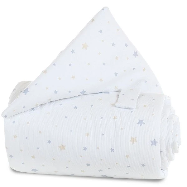 babybay Gitterschutz für Verschlussgitter Piqué weiß, mit Sternemix sand/azurblau