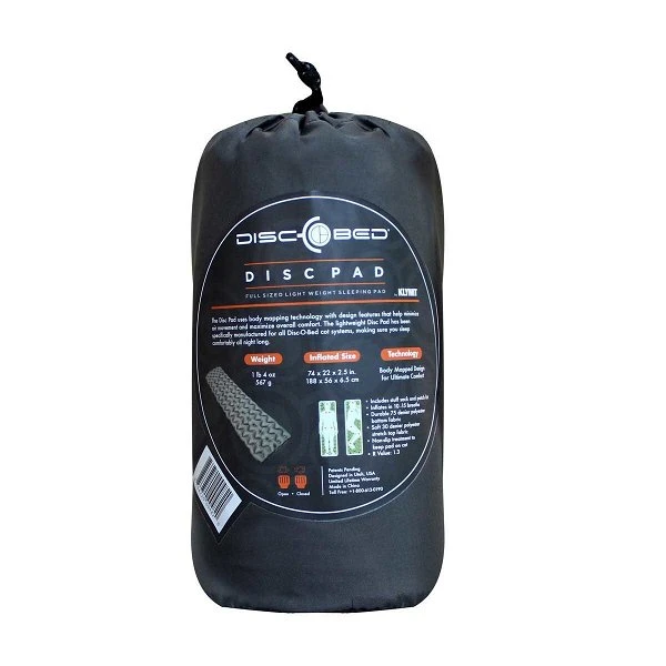 Das von Klymit speziell für Disc-O-Bed entworfene Disc-Pad ist die erste aufblasbare Luftmatratze von Disc-O-Bed, auf der Sie wie auf Wolken schlafen