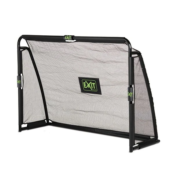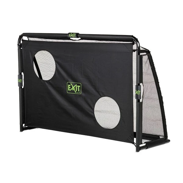 Der robuste schwarze Rahmen des EXIT Maestro Fußballtors ist für eine lange Lebensdauer galvanisiert und pulverbeschichtet und das feinmaschige Netz ist auf innovative Art befestigt, der Ball kann dadurch nicht zwischen Rahmen und Netz durchgeschossen werden. Für mehr Herausforderung kann der Torwand-Schirm in das Tor gehängt werden.