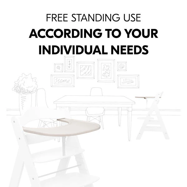 Im Kinderstuhl mit Aufsteck-Tablett sitzt dein Kind sicher und stabil, da du den Tisch mit Schrittgurt und 5-Punkt-Gurt nutzen kannst. Das großzügig geschnittene Tablett bietet viel Platz für Teller, Becher und Tassen zum Essen sowie für kleine Spielsachen. In Wohnzimmer, Kinderzimmer, Küche oder Bad – mit dem Alpha+ sitzt dein Kind im Holzhochstuhl immer auf Augenhöhe bei dir. Dein Kind kann den Stuhl nach euren individuellen Bedürfnissen nutzen. Kombinierst du das Tablett mit Sitzverkleinerer und Sitzkissen, ermöglichst du deinem Kind zusätzlichen Komfort.