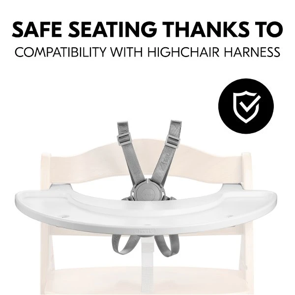 Das Play Tray kannst du mit einem Klick auf den Vorderbügel des Hochstuhls montieren und wieder abnehmen, wenn es nicht mehr benötigt wird. Die Holzspielaufsätze werden mit einer Holzschraube am Play Tray fixiert, sodass nichts verrutscht oder auf den Boden fällt. Das Spielbrett ist zusammen mit den Hochstuhlgurten verwendbar, sodass dein Kind auch beim Spielen sicher sitzt. Ab 12 Monaten geeignet.