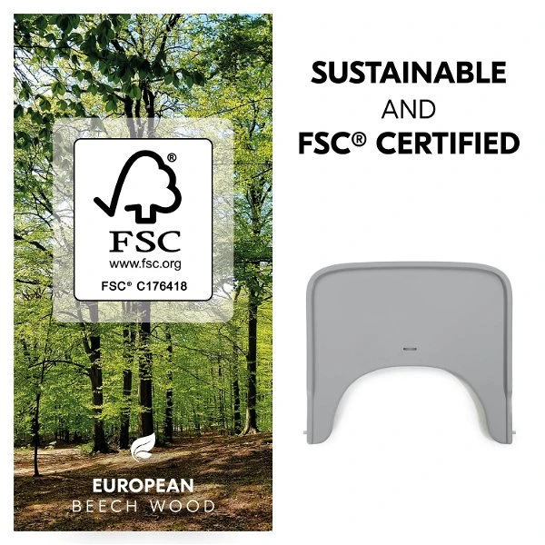 Das Essbrett wird aus recyceltem Material gefertigt, das nach dem Global Recycled Standard (GRS) zertifiziert ist. Das steht für klare soziale, ökologische und chemische Produktionsvorschriften. Das Tablett kannst du ganz einfach über einen Klick an den Hochstuhl montieren. Dieser eigene Tisch gibt deinem Kind von 6 bis 36 Monaten mehr individuellen Freiraum. Die glatte Oberfläche kannst du schnell mit einem Tuch und herkömmlichen Reinigungsmitteln sauber wischen.