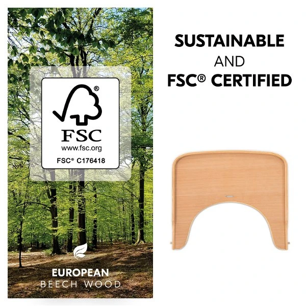 Das Essbrett wird aus recyceltem Material gefertigt, das nach dem Global Recycled Standard (GRS) zertifiziert ist. Das steht für klare soziale, ökologische und chemische Produktionsvorschriften. Das Tablett kannst du ganz einfach über einen Klick an den Hochstuhl montieren. Dieser eigene Tisch gibt deinem Kind von 6 bis 36 Monaten mehr individuellen Freiraum. Die glatte Oberfläche kannst du schnell mit einem Tuch und herkömmlichen Reinigungsmitteln sauber wischen.