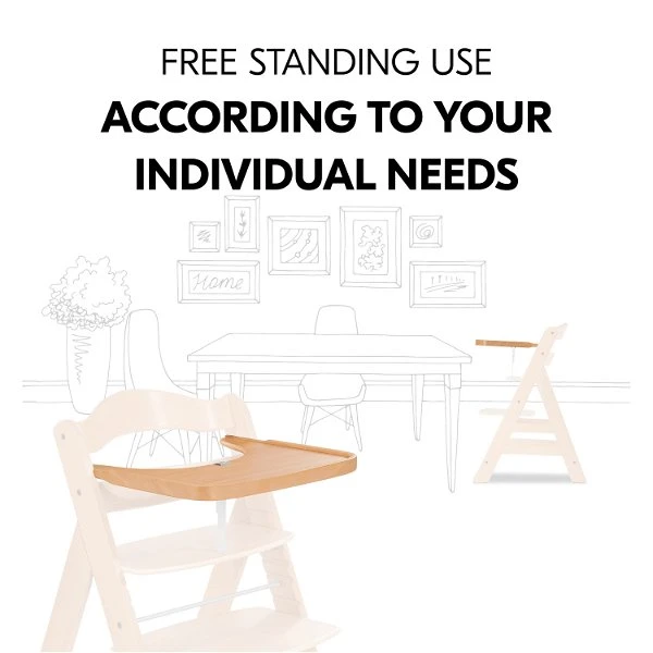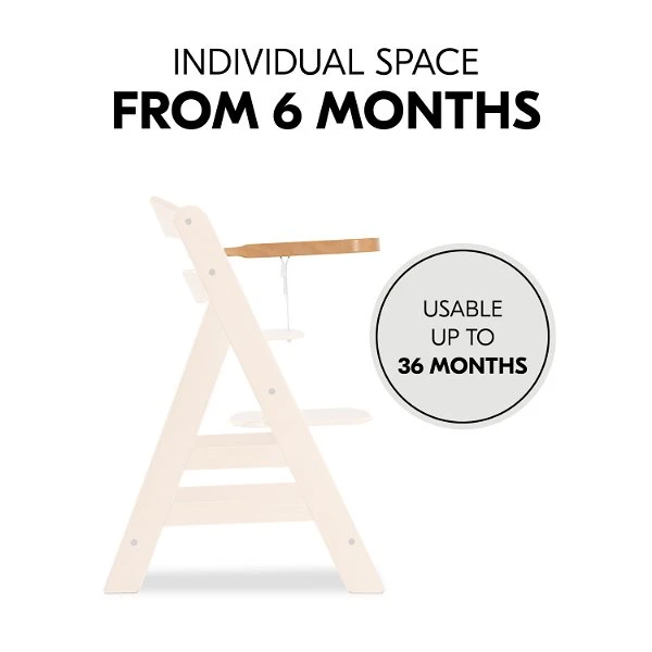 Im Kinderstuhl mit Aufsteck-Tablett sitzt dein Kind sicher und stabil, da du den Tisch mit Schrittgurt und 5-Punkt-Gurt nutzen kannst. Das großzügig geschnittene Tablett bietet viel Platz für Teller, Becher und Tassen zum Essen sowie für kleine Spielsachen. In Wohnzimmer, Kinderzimmer, Küche oder Bad – mit dem Alpha+ sitzt dein Kind im Holzhochstuhl immer auf Augenhöhe bei dir. Dein Kind kann den Stuhl nach euren individuellen Bedürfnissen nutzen. Kombinierst du das Tablett mit Sitzverkleinerer und Sitzkissen, ermöglichst du deinem Kind zusätzlichen Komfort.