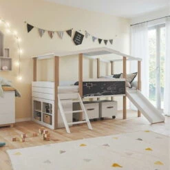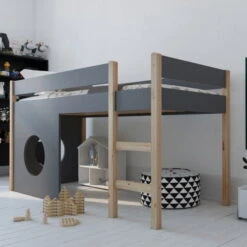 Nature Kid Cory Kinderzimmer Anthrazit 8-teilig Mit Hausbett 90 X 200 Cm, Dach & Schreibtisch