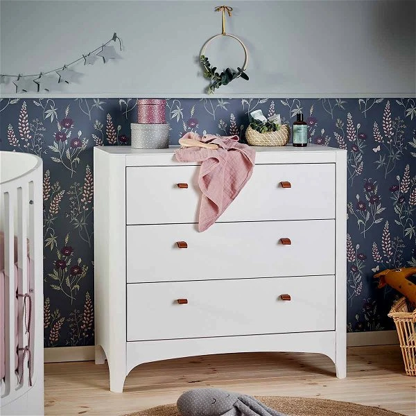 Die Leander Kommode Classic verfügt über drei geräumige Schubladen die ausreichend Platz zum Verstauen von Pullover, Hosen, Spielzeug oder Büchern bietet. Dank der weichen, runden Form der Leander Kommode gibt es keine scharfen Kanten an denen sich Ihr Kind verletzten kann. Alle Schubladen sind mit einem Softeinzug versehen.