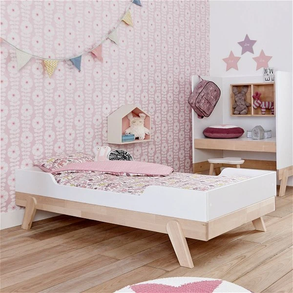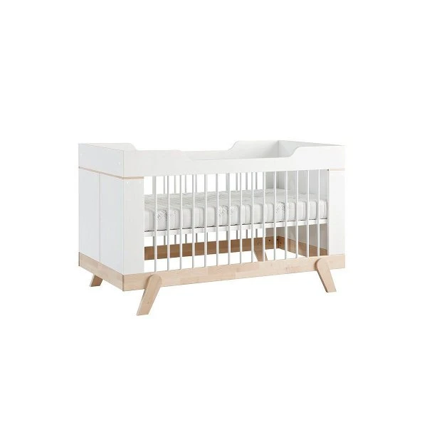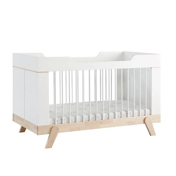 Das LIFETIME Baby-Juniorbett im skandinavischen Stil besteht aus einem Basisrahmen aus massiver Birke und weißen Komponenten aus lackiertem MDF. Der Boden ist 3fach höhenverstellbar (17, 35 und 50 cm). Auf jeder Seite können 5 Schlupfsprossen entfernt werden. Zu gegebener Zeit kann das Bett in eine Juniorbett umgebaut werden – jetzt dient der obere Rahmen als umlaufender Rausfallschutz auf dem Basisrahmen.