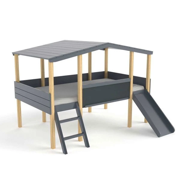 Nature Kid Cory Kinderzimmer anthrazit 8-teilig mit Hausbett, Dach & Schreibtisch