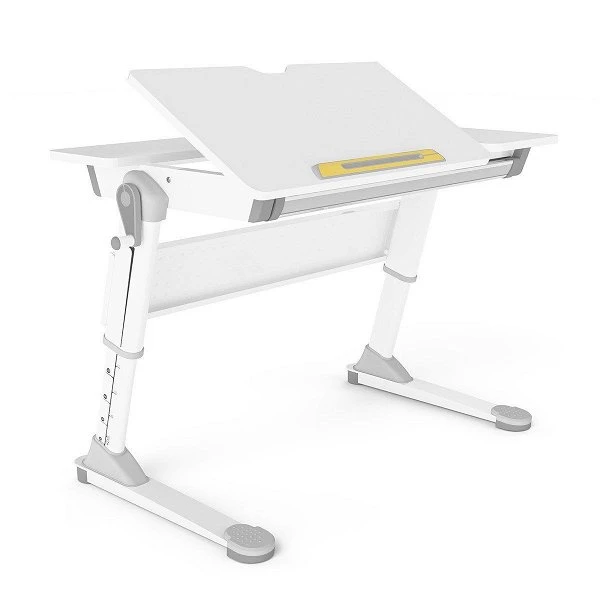 Der ergonomische Nature Kid Terra Schreibtisch ist besonders für Schulanfänger geeignet. Durch den großen Verstellbereich der Arbeitsplattenhöhe von 55 bis 75 cm wächst der Terra Schreibtisch von Anfang an mit Ihrem Kind mit. Auch die Ausstattung kann sich sehen lassen: die Arbeitsplatte ist dreigeteilt und der große, linke Teil lässt sich in mehreren Stufen schrägstellen und besitzt eine Dämpfung, damit sich die Platte beim verstellen langsam ansenkt. Die hintere und rechte Platte bleiben feststehend, hier können Stifte oder Papier liegen bleiben. Eine Schublade mit integrierter Stiftrinne sorgt für Ordnung und bietet viel Platz für alle Schreib- oder Malutensilien. An den vorderen Füßen des Terra Schreibtischs befinden sich Einsteller mit denen sich Bodenunebenheiten ausgleichen lassen.