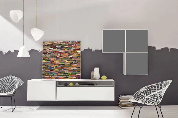 Die Hänge-Designbox verfügt über 1 Tür hinter der sich 2 Fächer verbergen. Die erforderlichen Hängebeschläge für die Wandmontage sind im Lieferumfang enthalten.