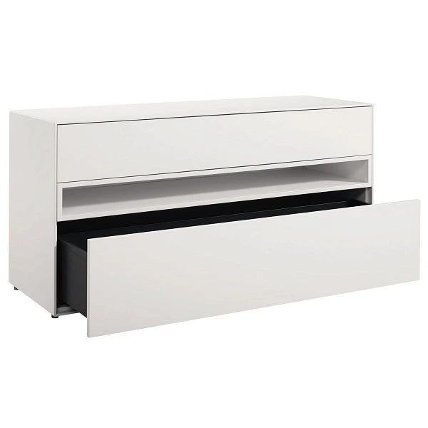 Der Baukasten verfügt über 1 offenes Fach und 2 Schubladen in denen sich ein geräumiges Fach befindet.