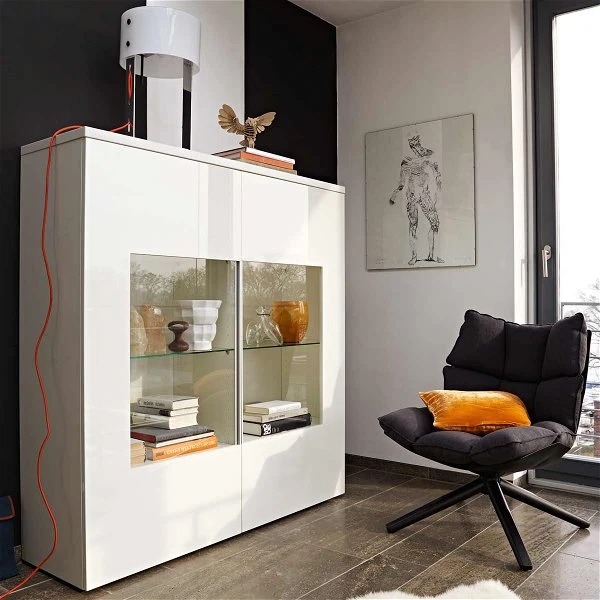 Die now! time by hülsta Kombination 5 in Lack-weiß/Lack-Hochglanz-weiß verfügt über zwei Türen mit je einem einer Glasscheibe.