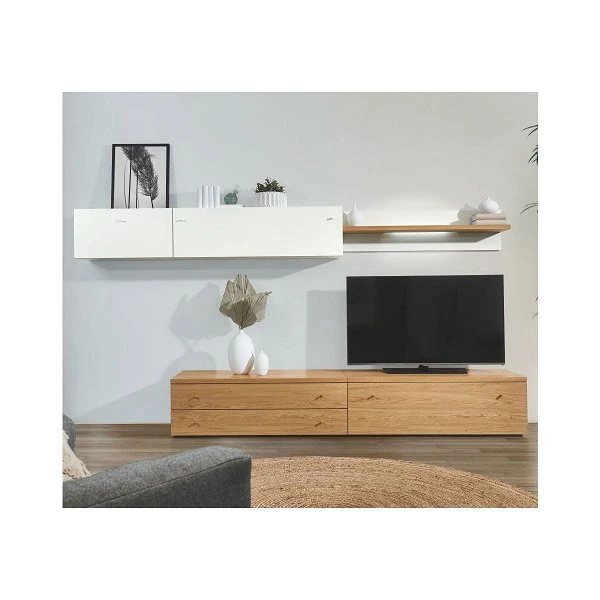 Die now! time by hülsta Kombination 7 in Natureiche/Lack-weiß ist eine Kombination aus Lowboard, Hängeelementen und einem Regalbrett.
