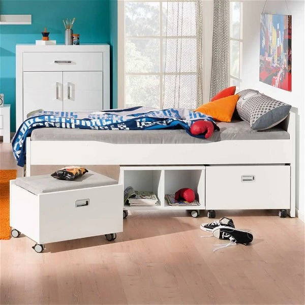 Das Paidi Fiona Kojenbett besitzt geschlossene Kopf- und Fußteile in edler Kassettenoptik. Die Häupter sind unterschiedlich hoch – aus diesem Grund kann das Paidi Fiona Kojenbett nicht zum Etagenbett, Spielbett oder Hochbett umgebaut oder mit Schutzseiten und Absturzsicherung versehen werden!