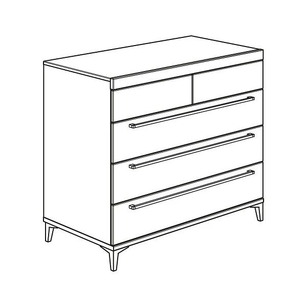Die Paidi Remo Kommode ist mit 5 Schubkästen ausgestattet. Die grifflosen oberen Schubkästen sind mit dem ‚Push-to-open-System‘ ausgestattet, d.h., Öffnen und Schließen erfolgen durch Druck gegen den Schubkasten. Die oberen Schubkästen besitzten einen Vollauszug und sind immer kreideweiß.