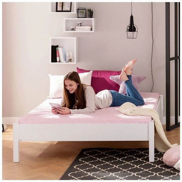 Die Paidi Tiago Studioliege passt durch ihre niedrigen Häupter gut unter Dachschrägen. Sie ist der optimale Platz für Teenager zum Chillen und passt zu allen kreideweißen Programmen von Paidi – besonders zu Fiona, Fionn und Oscar. Wenn Freunde zu Besuch kommen, ist unter der Studioliege Tiago Platz für ein Auszieh- oder Unterschiebebett, das schnell einsatzbereit ist und einen komfortablen Extra-Schlafplatz bietet.