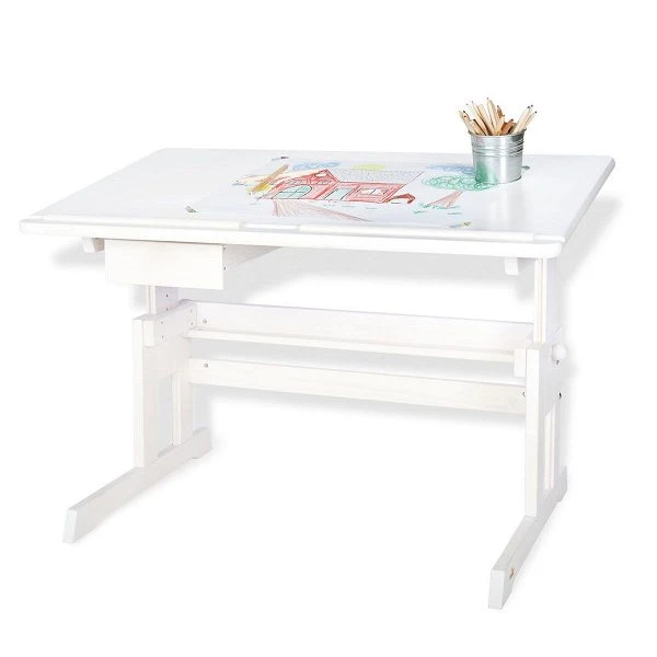 - Kinderschreibtisch Kiefer massiv, weiß lasiert