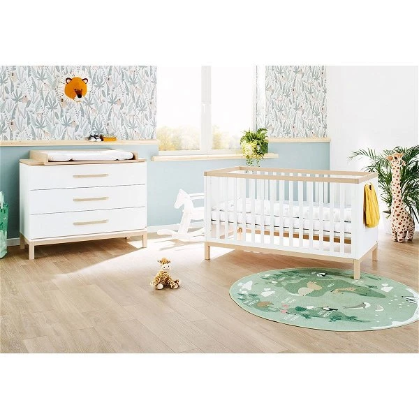 Das Pinolino Light Sparset ist eine Neuheit im Sortiment 2021. Die Kombination von klarem Weiß und dem Sockel aus massiver Kiefer passt perfekt zu einer modernen Einrichtung. Die massiven Möbelgriffe runden das Gesamtbild ab.