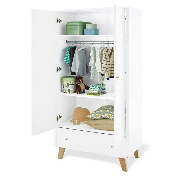 Mit weißen Fronten und Möbelfüßen aus massiver Eiche versprüht das Pinolino Pan Kinderzimmer seinen Retro-Charme im Reich Ihrer Kleinen. Ein trendiges Design für moderne Familien.