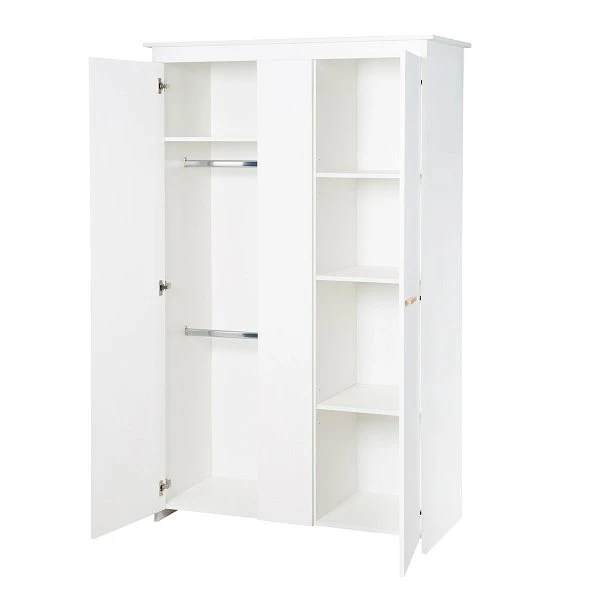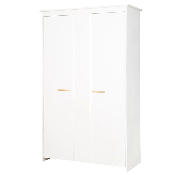 Der roba Anton Kleiderschrank hat ein schlichtes Design. Hinter den 2 Türen mit Griffen aus Buchenholz und Soft-Close-Scharnieren verbirgt sich viel Stauraum. Fünf Böden und eine Kleiderstange bieten Platz für die gesamte Babykleidung. Durch die Soft-Close-Scharniere lassen sich die Türen sanft und leise schließen.