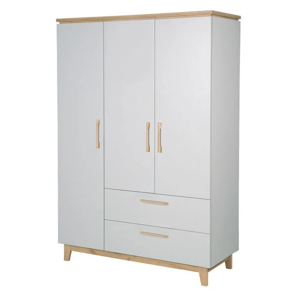 Der Kleiderschrank von Roba ist mit einer großen und zwei kleineren Türen und zwei Schubkästen ausgestattet. Türen und Schubkästen mit Softclose.