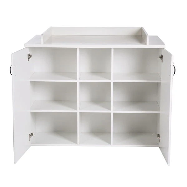 Die Wickelkommode Constantin ist mit 2 Türen und 3 offenen Fächern ausgestattet. Sie wird inklusive Wickelansatz, der jederzeit an die Kommode angesetzt und auch abgenommen werden kann, geliefert.
