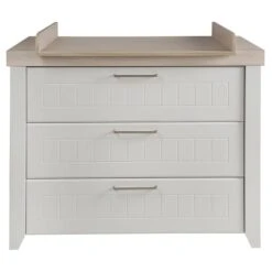 Die Roba Wickelkommode Helene ist mit 3 Schubladen und inklusive Wickelaufsatz, der mittig oben am Wickeltisch befestigt wird, ausgestattet. Die hochwertige Metallgriffe und Fräsungen tragen zum modernen Look bei. Die oberste Schublade verfügt über Vollauszug. Die Schubladen sind mit der Soft Close-Technik für sanftes und leises Schließen versehen. Die breite Wickelkommode bietet viel Platz für alle Wickelutensilien, die griffbereit aufbewahrt werden können.