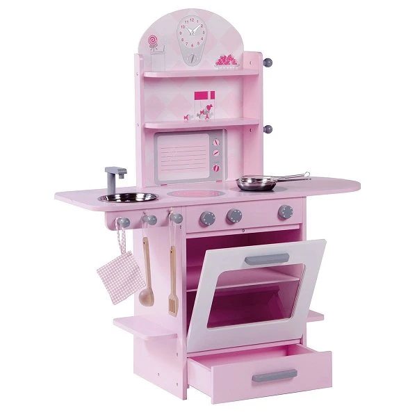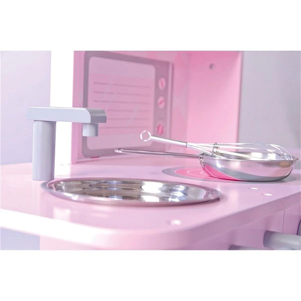 Die Roba Kinderküche lässt Kinderherzen höher schlagen, denn sie ist mit allem ausgestattet was eine Küche benötigt. Ein Herd, zwei Kochfelder, ein Spülbecken und ein Wasserhahn laden zum Spielen ein. Zusätzlich bieten Schneebesen, Pfanne, Topflappen, Holzlöffel und -schaber wichtige Hilfsmittel beim Kochen. Die Schublade unter dem Herd bietet Stauraum für das Zubehör.