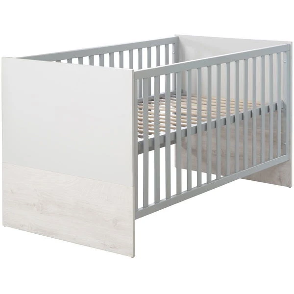 Das roba Kinderzimmer Maren 2 überzeugt mit seiner zeitlosen, 2-farbigen Optik im Dekor weiß gekalkte Eiche mit Echtholzhaptik und in modernem Lichtgrau. Das Kinderbett wächst mit Ihrem Kind mit und kann zum Juniorbett umgewandelt werden. Die breite Wickelkommode bietet viel Platz für alle Wickelutensilien, die griffbereit aufbewahrt werden können. Im dreitürigen Kleiderschrank können Sie die gesamte Kleidung für Ihr Kind unterbringen. Dieser verfügt über eine Kleiderstange und sechs Fachböden.