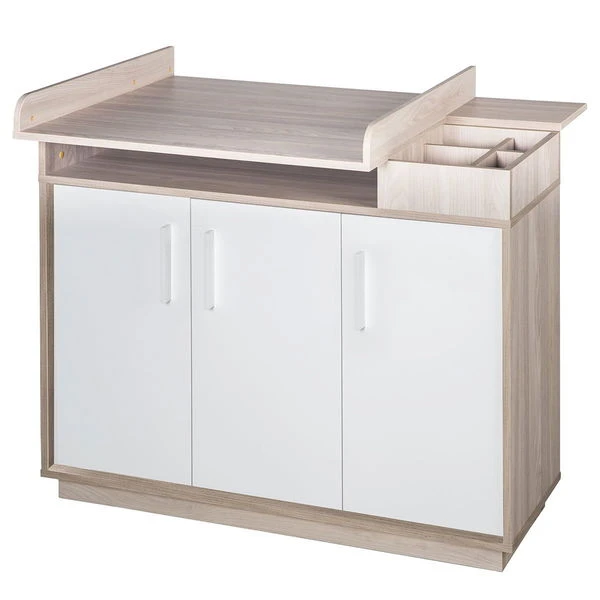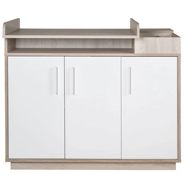 Die Olaf Wickelkommode ist mit 3 Türen (Softclose) ausgestattet. Sie wird inklusive Wickelansatz und praktischer Ablage daneben.