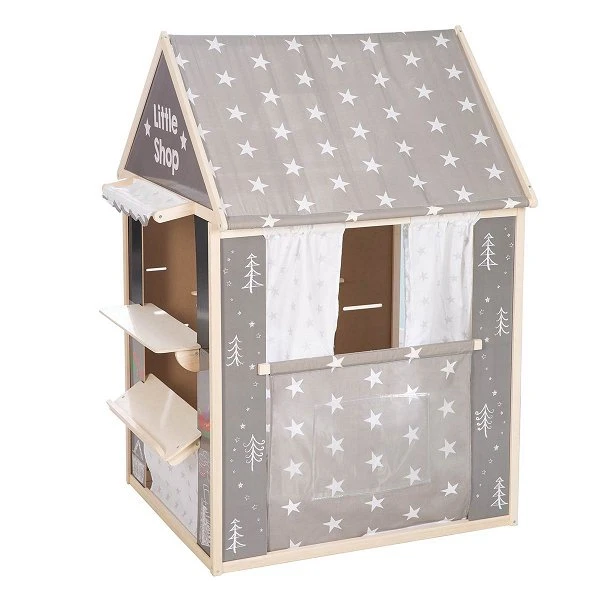 Die Roba Spielhaus Kombination kann wahlweise als Kaufladen mit Theke und Uhr, Schalter für Post, Kiosk oder Bank sowie Kaspertheater mit Vorhang bespielt werden. Jede Seite des Spielhauses hat sein eigenes Thema für eine Erlebniswelt mit zahlreichen Spielmöglichkeiten und ist dazu noch liebevoll bedruckt. Das Spielhaus fördert Kreativität, soziale Interaktion und ist pädagogisch ab 3 Jahren sehr empfehlenswert.