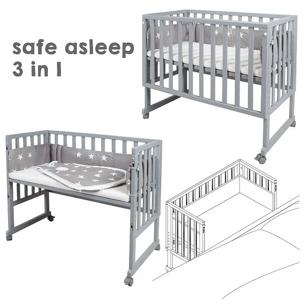 Das multifunktionale Roba Stubenbett 3 in 1 ist ein intelligentes Raumwunder. Es ermöglicht kindgerechtes Schlafen, Wohnen und Heranwachsen auf engstem Raum. Als praktisches Beistellbett zum Elternbett, als rollbares Kinderbett oder bequeme Sitzbank. Es bietet eine Liegefläche von 90 x 45 cm und ist stufenlos höhenverstellbar. Für die Umwandlung des Kinderbettes zu einem Beistellbett oder einer Sitzbank wird ein Seitenelement einfach nach unten geklappt. Eine Ablagefläche über dem Boden bietet Platz für zwei praktische Stofffächer für Babykleidung, Spielwaren oder Accessoires. In diesem Roba Stubenbett 3 in 1 wird sich Ihr Baby vom ersten Tag an wohlfühlen und später hat es im Kinderzimmer seinen festen Platz.