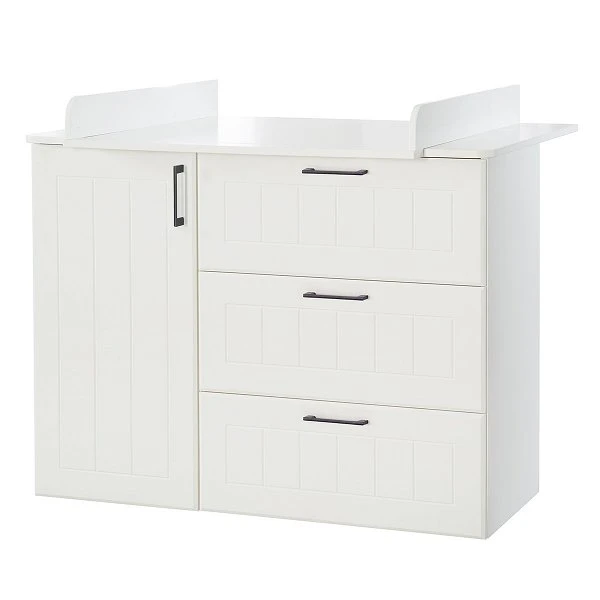 Die roba Sylt Wickelkommode hat einen abnehmbaren Wickelaufsatz und eine aufwendig gefräste Front. Die eingebaute Softclose-Technik bei der Tür und den Schubladen sorgt für ein sanftes und leises schließen. Die Wickelkommode kann später als normale Kommode genutzt werden.