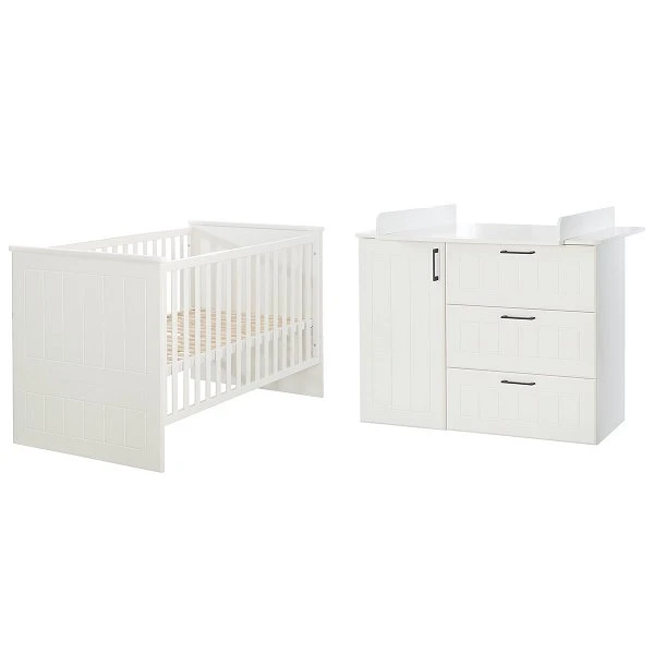 Das roba Sylt Kinderzimmer Sparset überzeugt mit einem zeitlosen Design und einer aufwendigen Fräsung an den Fronten. Das Kinderbett kann zum Juniorbett umgebaut werden (Umbauseiten separat erhältlich) und so bis zu bis 7 Jahre genutzt werden. Das mehrfach höhenverstellbare Lattenrost ermöglicht Ihnen eine rückenschonende Haltung wenn Sie Ihr Kind aus dem Kinderbett nehmen. Durch die herausnehmbaren Schlupfsprossen kann Ihr Kind leicht und sicher aus dem Bett ein- und aussteigen. Die Wickelkommode verfügt über drei Schubladen und 1 Tür mit Softclose-Technik sowie einen abnehmbaren Wickelaufsatz. So kann die Wickelkommode später als normale Kommode genutzt werden.