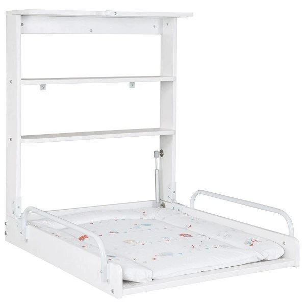 Das roba Wandwickelregal verfügt über zwei Ablageflächen und ist platzsparend und praktisch zugleich. Das Wickelregal lässt sich auf Ihre individuelle Wickelhöhe anbringen. Die seitlichen Schutzbügel verhindern ein herunterfallen. Die Wickelauflage ist weich gepolstert und lässt sich leicht abwischen, da sie mit einer wasser- und schmutzabweisenden Oberseite versehen ist. Das roba Wandwickelregal ist aus Schichtholz gefertigt und weiß lackiert.
