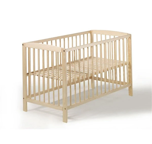 Das Kinderbett ist in Kiefer massiv gefertigt und an allen 4 Seiten gestäbt. Drei Schlupfstäbe erleichtern dem kleinen Bewohner zu gegebener Zeit den Ein- und Ausstieg. Der Lattenrost ist 3fach verstellbar.