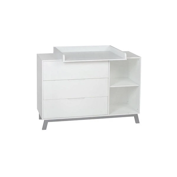 Die Wickelkommode Florence ist mit einem abnehmbaren Wickelaufsatz ausgestattet. So bereitet Ihnen die Kommode auch nach der Wickelzeit noch Freude. Die drei Schübe mit Selbsteinzug und extra starken seitlichen Führungsschienen bieten viel Platz für Windeln und Pflegemittel. Die 2 offenen Fächer bieten zusätzlichen Platz. Eingefräste Griffmulden und massives Fußgestell.