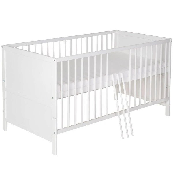 Das Kombikinderbett Lenny weiß ist aus Kiefer massiv mit HDF-Füllung gefertigt. Der Lattenrost ist dreifach höhenverstellbar und somit gut anpassbar. Drei Schlupfsprossen erleichtern dem kleinen Bewohner zu gegebener Zeit den Ein- und Ausstieg. Das Kinderbett ist zum Juniorbett umbaubar.