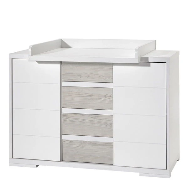 Die Wickelkommode Maxx Boathouse ist mit einem abnehmbaren Wickelaufsatz ausgestattet. So bereitet Ihnen die Kommode auch nach der Wickelzeit noch Freude. Die zwei Türen mit Soft-Close-System und die vier Schübe mit Push-to-open bieten viel Platz für Windeln und Pflegemittel.