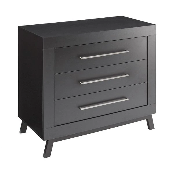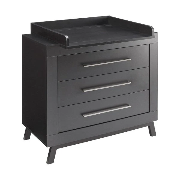 Die Wickelkommode Miami Black ist mit einem abnehmbaren Wickelaufsatz ausgestattet. So bereitet Ihnen die Kommode auch nach der Wickelzeit noch Freude. Die drei Schübe mit Selbsteinzug und extra starken seitlichen Führungsschienen bieten viel Platz für Windeln und Pflegemittel. Massives Fußgestell.
