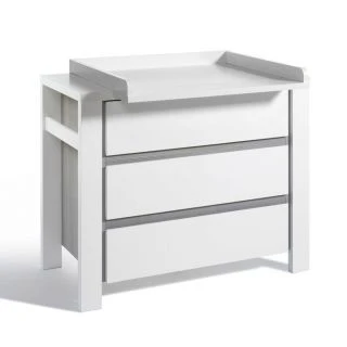 Die Wickelkommode Milano Pinie ist mit einem abnehmbaren Wickelaufsatz ausgestattet. Die drei langen Schübe mit Selbsteinzug bieten viel Platz für Windeln und Pflegemittel.