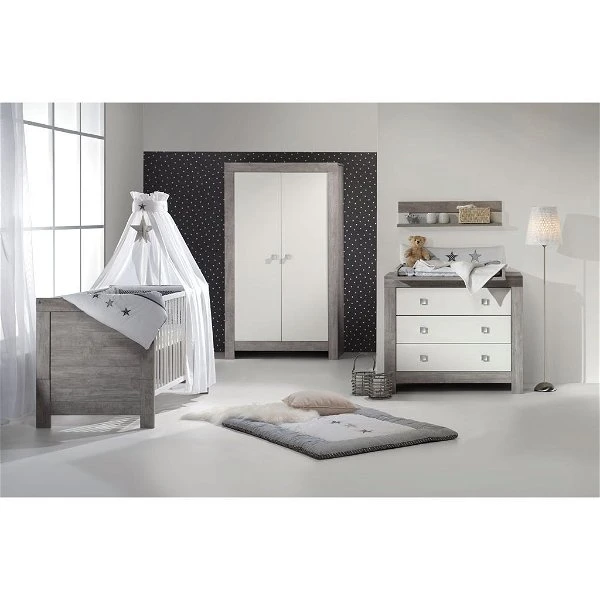 Holen Sie die Natur ins Kinderzimmer. Das Schardt Kinderzimmer Nordic Driftwood/weiß gibt Babyräumen durch Massivholzoptik ein neues Gesicht und weiß bringt Wärme, Wohnlichkeit und Abwechslung ins Kinderzimmer. Gut organisierten Stauraum bieten Schrank und Wickelkommode. Diese garantieren wertvolle Arbeitserleichterung.