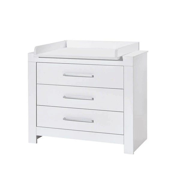 Die Wickelkommode ist mit einem abnehmbaren Wickelaufsatz ausgestattet.