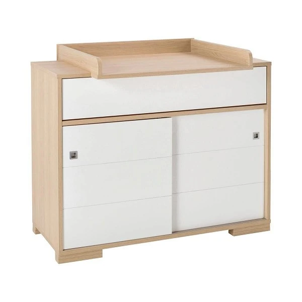 Die Wickelkommode Slide Oak ist mit einem abnehmbaren Wickelaufsatz ausgestattet. So bereitet Ihnen die Kommode auch nach der Wickelzeit noch Freude. Die zwei Schiebetüren mit horizontalen Rillenfräsungen fahren komplett hintereinander durch. Der obere Schubkasten wird mit push-to-open geöffnet und besitzt extra starke seitliche Führungsschienen.