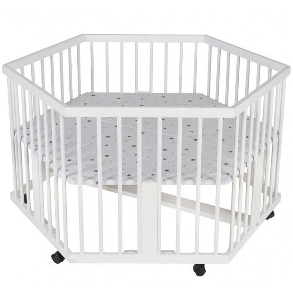 Mit der speziellen Sechseckform bietet das Laufgitter Solitär von Schardt eine optimale Spielfläche. Das aus massiver Kiefer gefertigte Gestell ist ausgesprochen funktionell und langlebig. Das Laufgitter ist mit 6 Rollen mit Feststellfunktion ausgestattet.Durch die hiermit gebotene Flexibilität können Sie Ihr Baby bequem von einem Zimmer zum anderen mitnehmen und wissen es so immer gut behütet. Der Boden des Laufgitters Solitär ist weich gepolstertet und zweifach höhenverstellbar. Durch die Folie ist der Boden auch leicht zu reinigen und somit ganz auf die Bedürfnisse eines Kleinkindes zugeschnitten.
