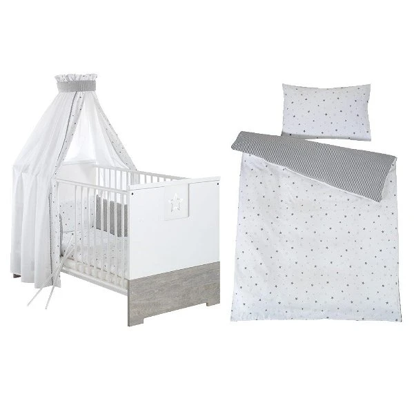 Mit dem vierteiligen Bettset der Serie Sternchen grau runden Sie Ihr Schardt Kinderbett harmonisch ab.