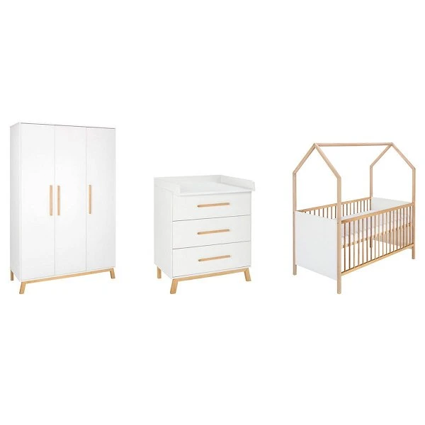 Das Schardt Venice Kinderzimmer ist in Dekor weiß gehalten. Es ist nicht nur chic sondern auch komplett ausgestattet mit Wickelauflage für die Kommode und Umbauseiten, um das Babybett zu gegebener Zeit in ein Juniorbett umzuwandeln. Ein voll ausgestatteter Kleiderschrank mit Einlegeböden und Kleiderstange rundet den Lieferumfang ab.