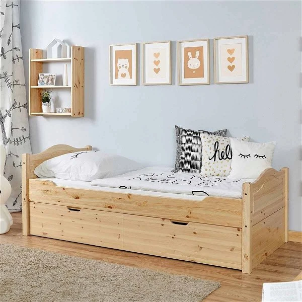 Ticaa Einzelbett Leni mit 2er Schubkästen Kiefer – 90×200 cm