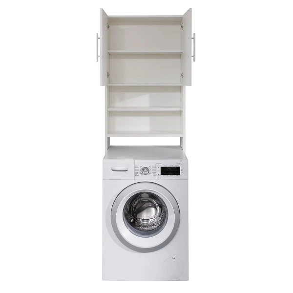 Die trendteam Basix Waschmaschinen-Überbau ist eine stilsichere Lösung für Stauraum, ohne zu viel Platz wegzunehmen in mittlerer Größe. Das Design kennzeichnet der weiße Korpus, welches fabelhaft zu Ihren sonstigen Mobiliar passt. Abgerundet wird das Dekor durch chromfarbene Griffe mit glänzendem Finish. Eine ausgezeichnete Beständigkeit wird durch den Einsatz von Melamin garantiert.